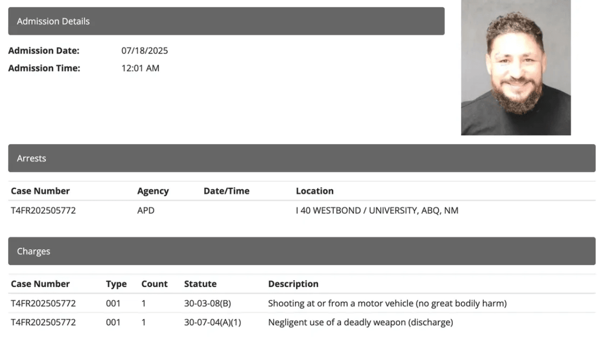 According to KRQE News, Sanchez was arrested in Albuquerque on Thursday after allegedly firing a gun from a moving vehicle as it drove past the scene of a highway crash in New Mexico.