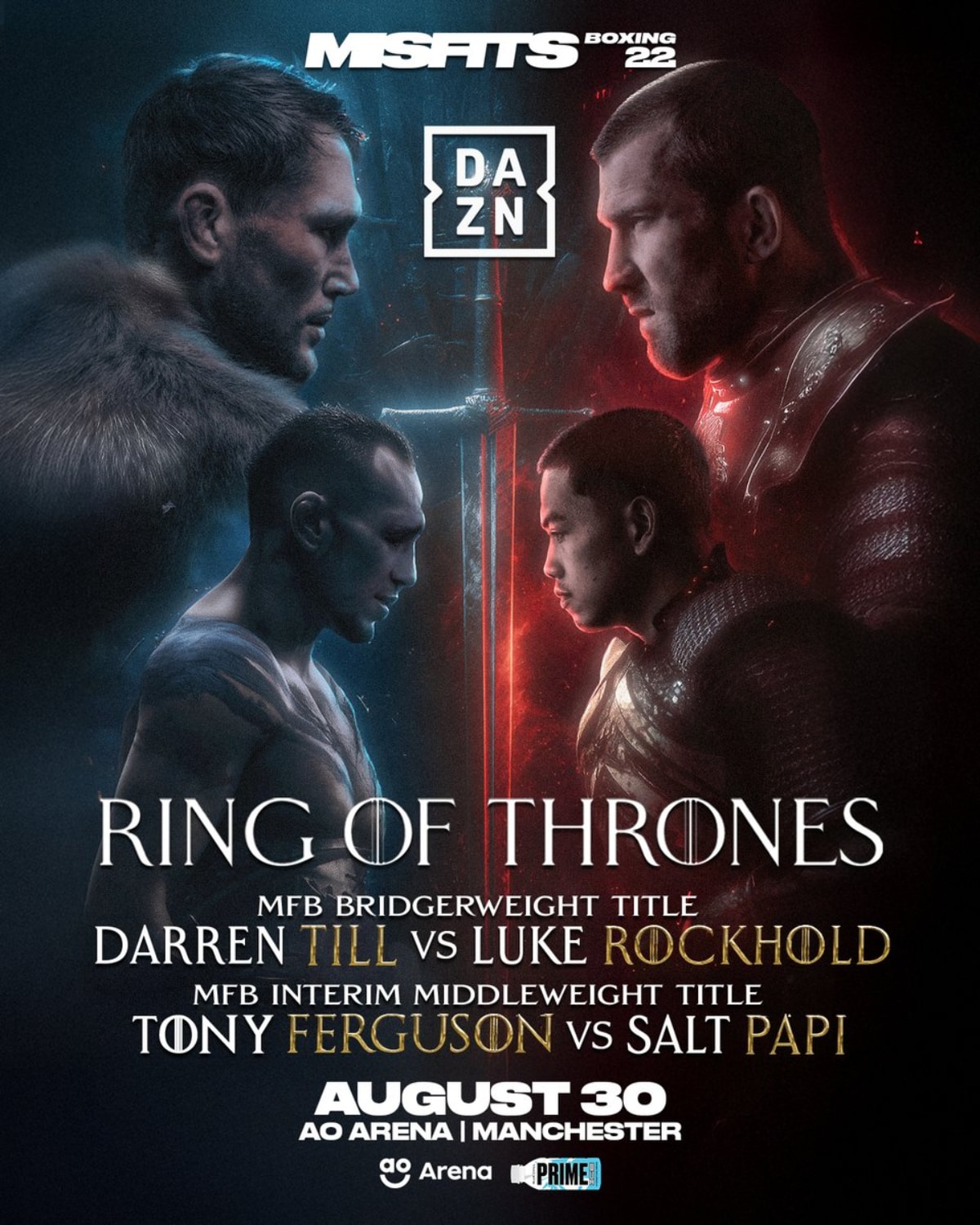 The Misfits Boxing 22 card is set to be headlined by a MFB bridgerweight title clash between former UFC stars Darren Till and Luke Rockhold. Meanwhile, the co-main event will feature Tony Ferguson making his influencer boxing debut against Salt Papi (real name Nathaniel Bustamante) in a showdown for the interim MFB middleweight championship.