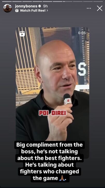 After being named in White's Mount Rushmore list, Jones showed his appreciation via an Instagram story that he posted with the following caption next to the video.