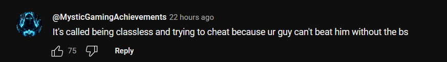 "It's called being classless and trying to cheat because ur guy can't beat him without the bullsh*t."